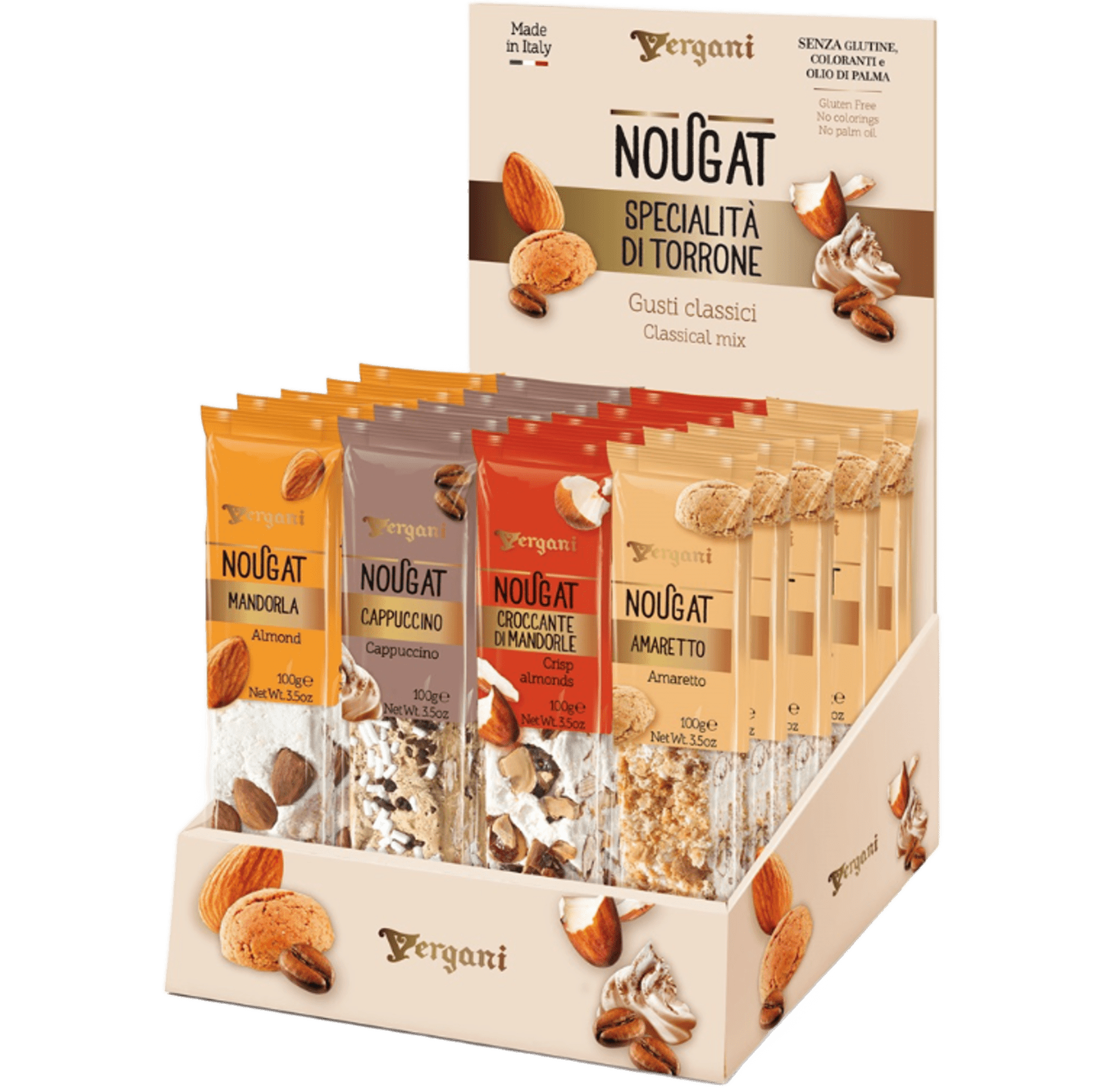 Vergani Classic Soft Nougat Bar Mandorla (1 Bar) is a premium confection crafted for almond lovers and nougat enthusiasts seeking a refined, easy-snack treat. This 1 Bar portion features a soft nougat with mandorla (almond) for a balanced, nutty flavor in a convenient bite. As a classic example of the Soft Nougat Bar category, it delivers simple ingredients and authentic taste, making it ideal for personal indulgence, gifting, or pairing with coffee or tea.
